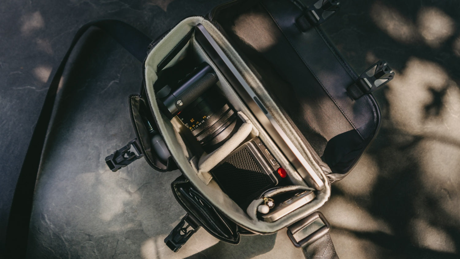 (Example contents shown such as cameras, lenses, watches, laptops or pens are for illustrative purposes only and are not included in the scope of delivery).