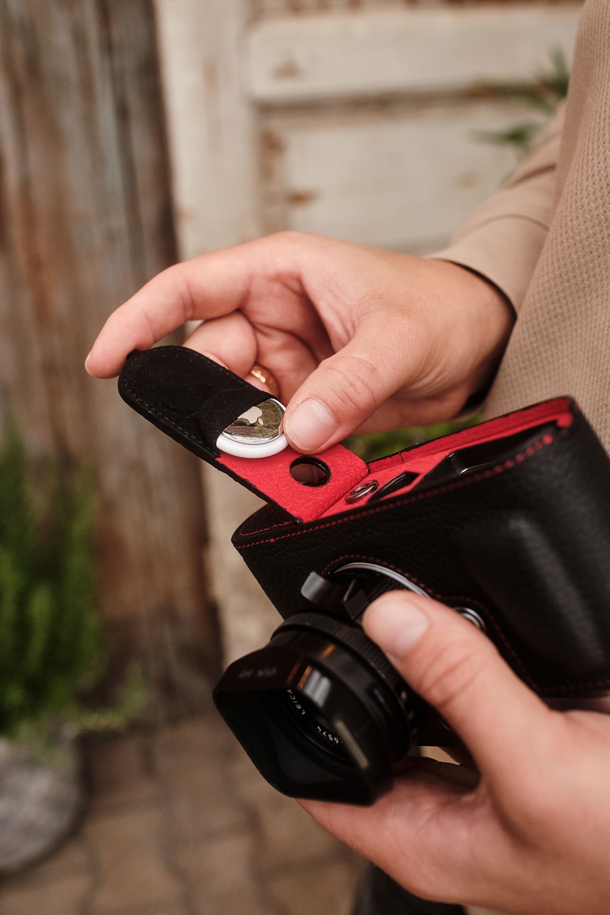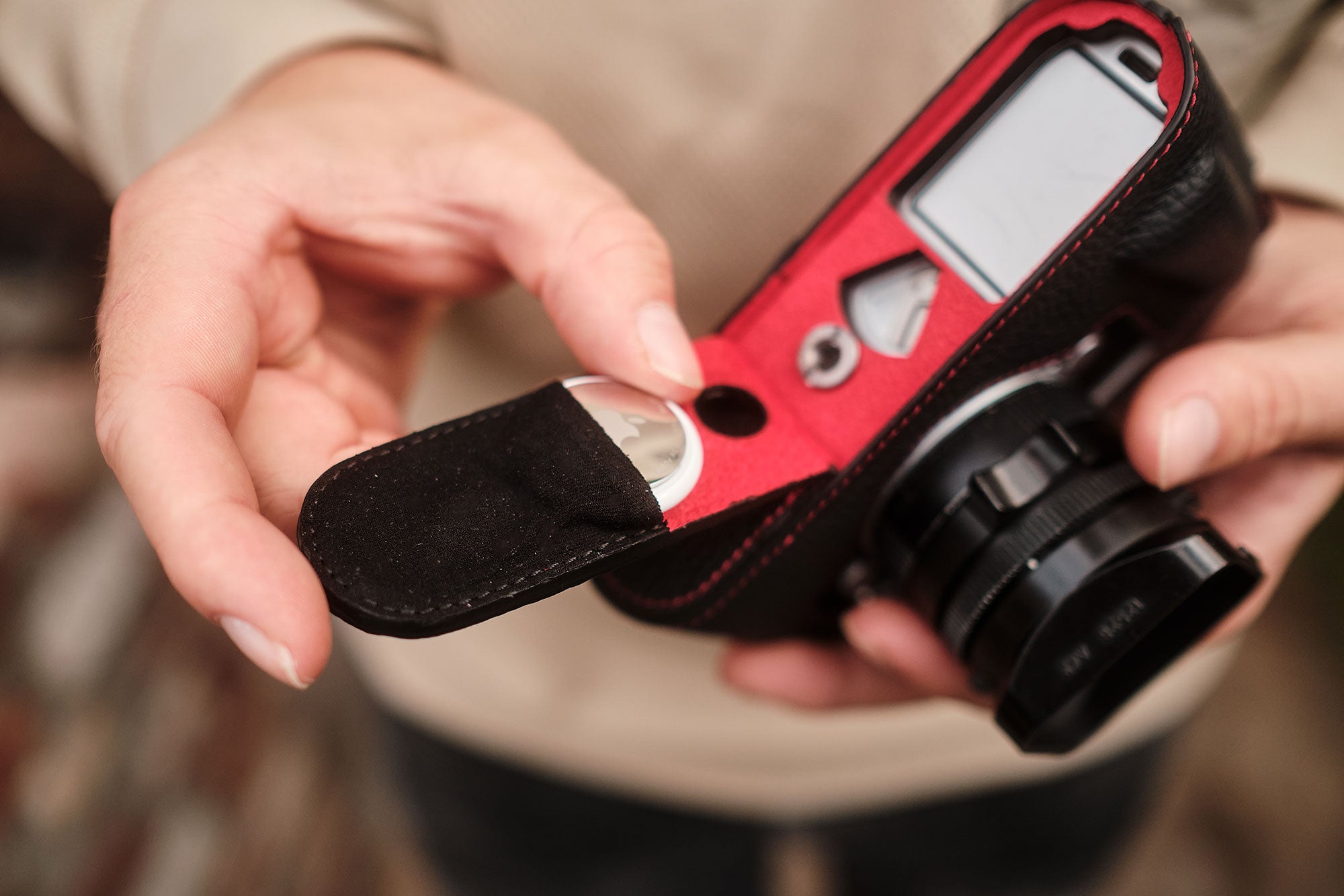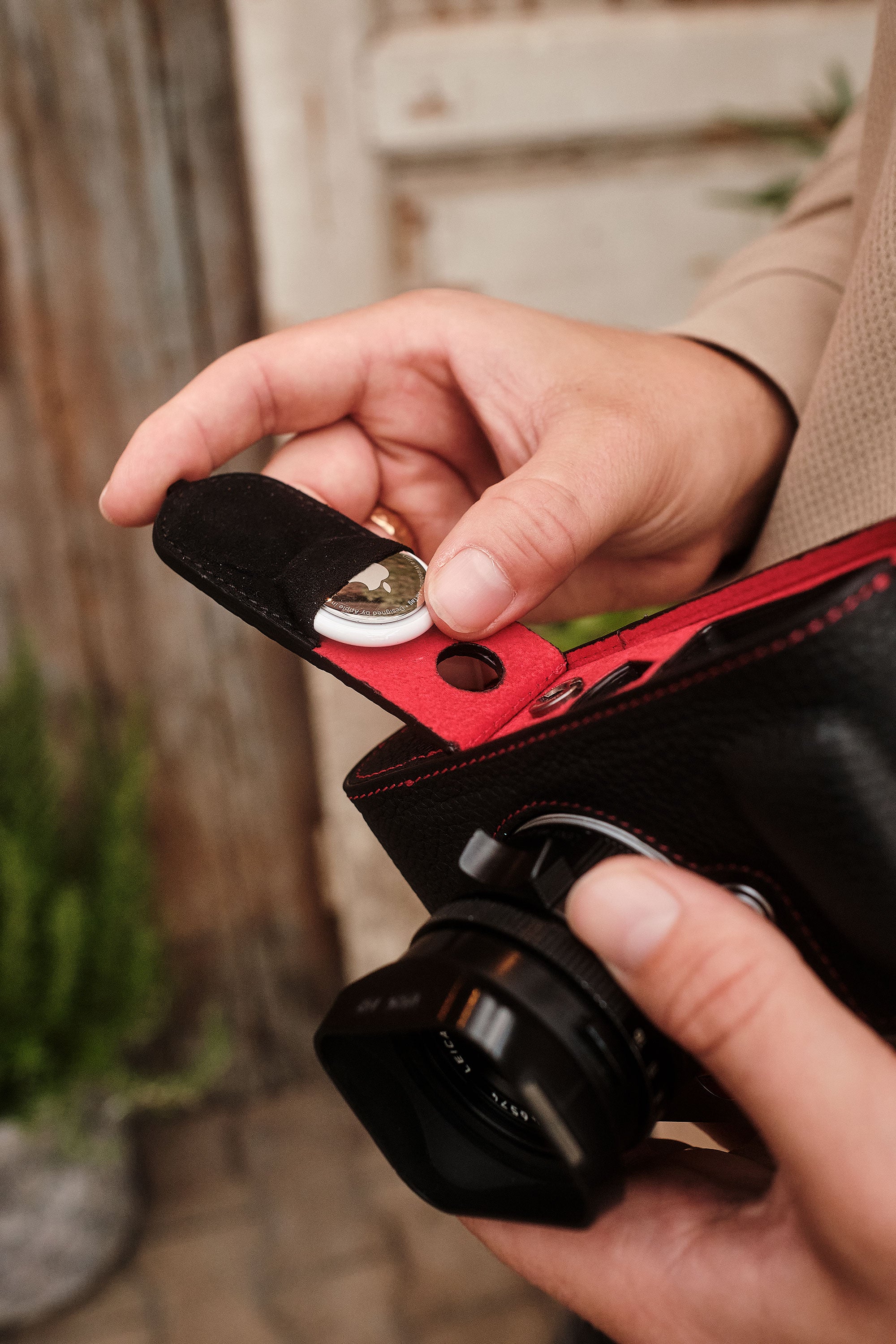 Inside the bottom flap is an inconspicuous, padded pocket for the Apple AirTag®. This means that the camera is always easy to find without compromising the aesthetics or function of the case. The pocket is concealed & secure, for perfect protection of your camera.