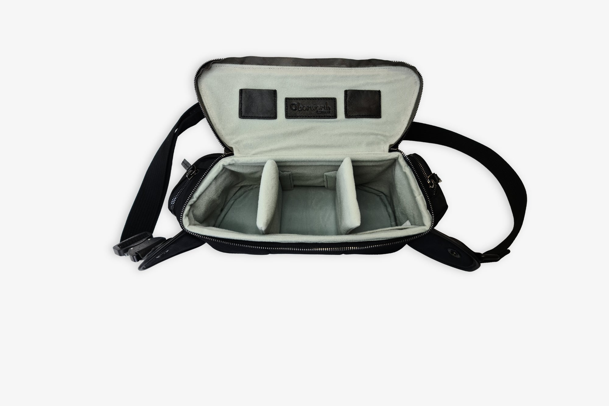 Relon / NoirLe sac Oberwerth Sling allie élégance, confort et fonctionnalité. Fabriqué à la main en cuir de vache pleine fleur, il offre aux photographes une solution de transport légère et ergonomique avec un accès rapide à leur matériel. La partie dorsale rembourrée et la sangle crossbody réglable individuellement avec fermeture enfichable Cobra assurent un grand confort de transport.