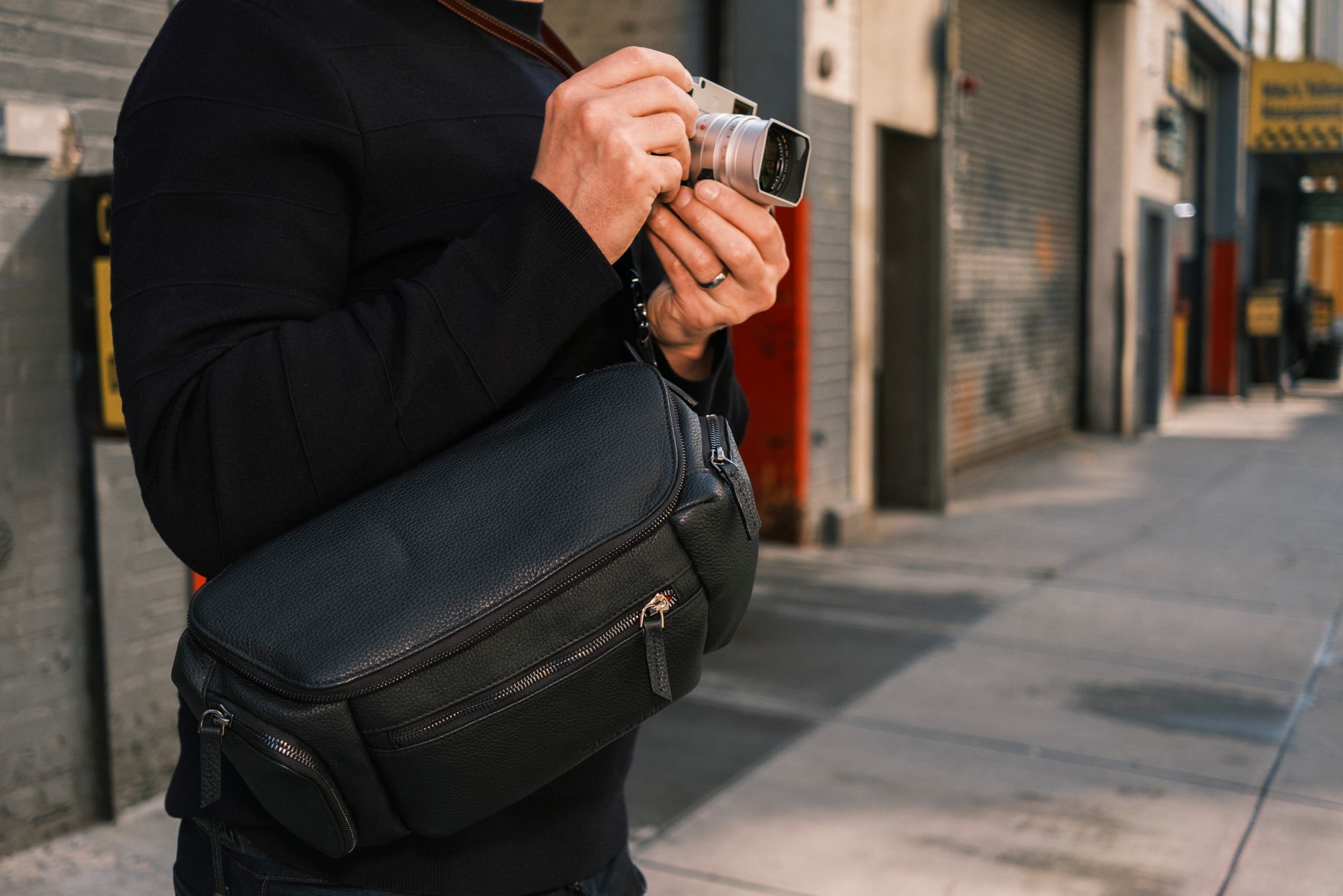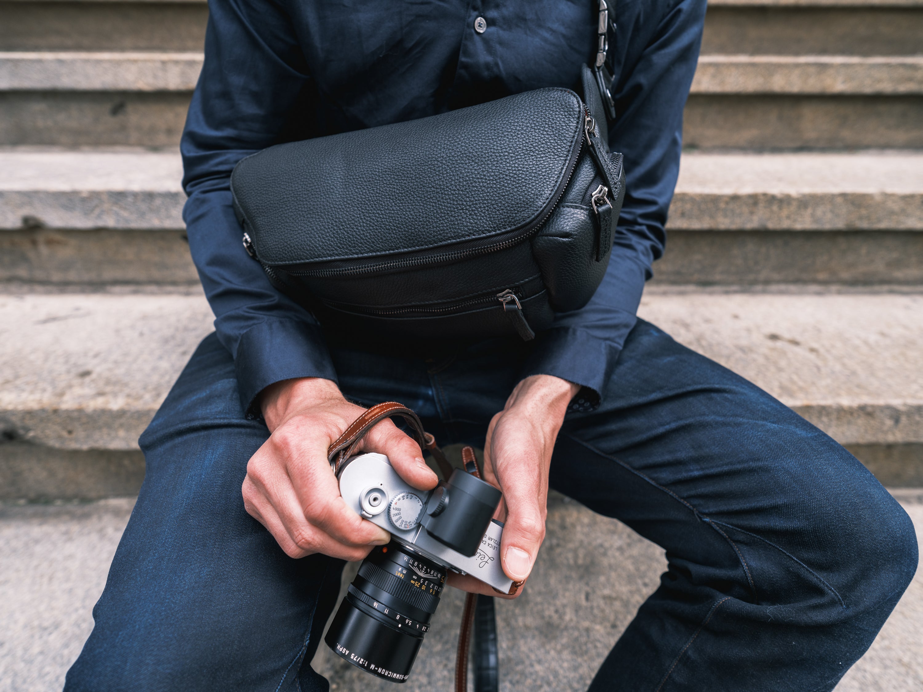 Pour les photographes qui souhaitent combiner une apparence professionnelle avec un accès rapide, nos sacs pour appareil photo en cuir combinent la fonctionnalité d'un sling bag avec une esthétique raffinée et de haute qualité, qui séduit également dans les situations professionnelles ou événementielles exigeantes.